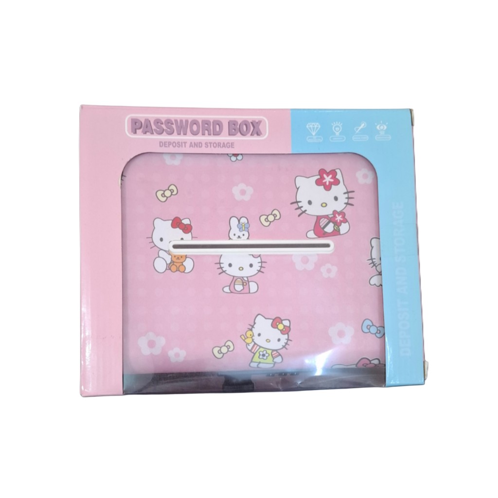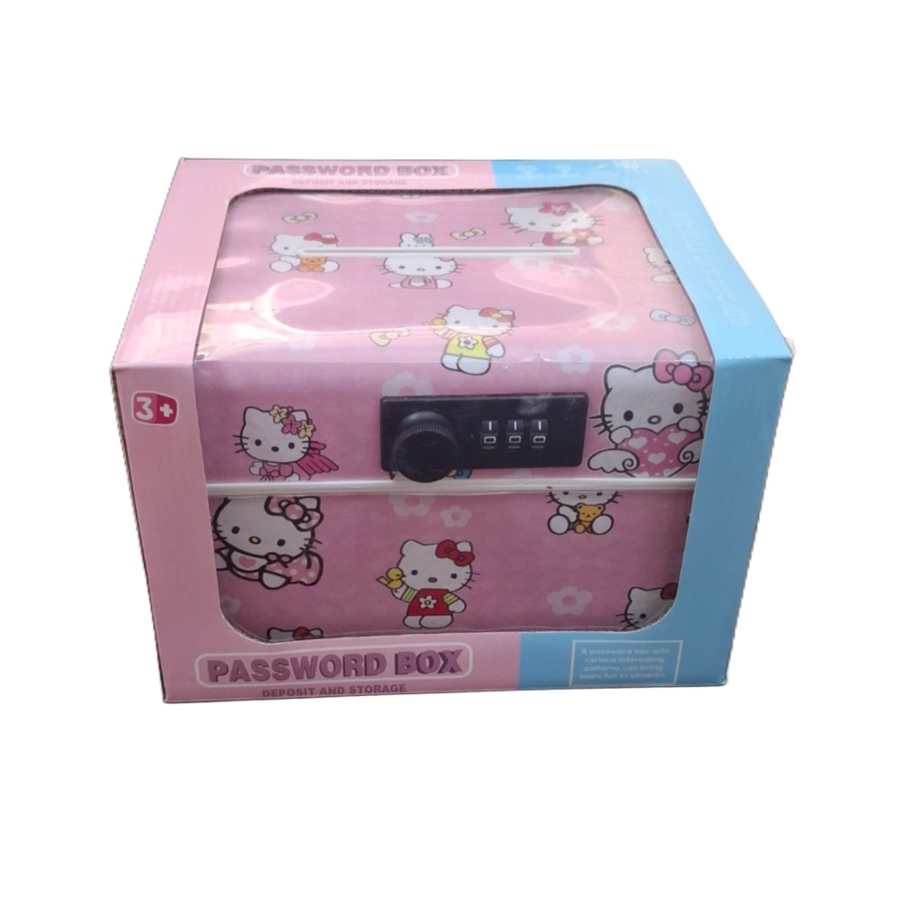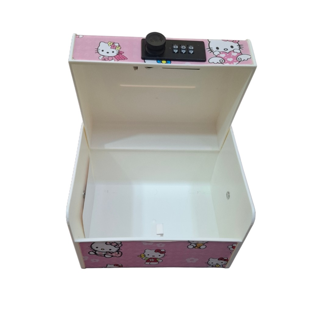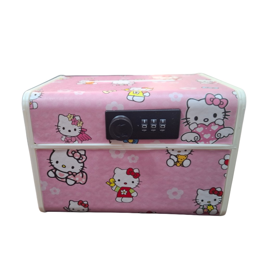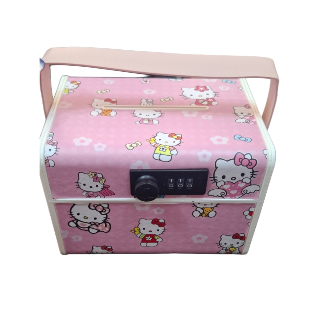 این محصول یک قلک یا گاوصندوق رمزدار طرح هلوکیتی به همراه بند می باشد.اسباب بازی گاوصندوق هلو کیتی یکی از پرطرف دار ترین اسباب بازی ها بین کودکان است.این قلک دارای یک رمز پیش فرض 3 رقمی می باشد و قابلیت تغییر رمز نیز برای این محصول وجود دارد. ورودی سکه یا اسکناس از طریق یک شکاف در بالای قلک می باشد.