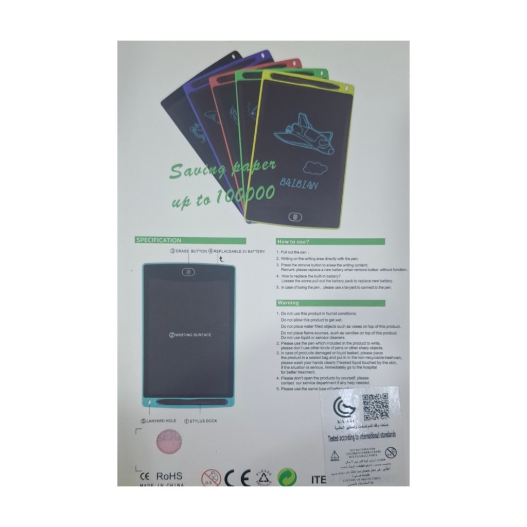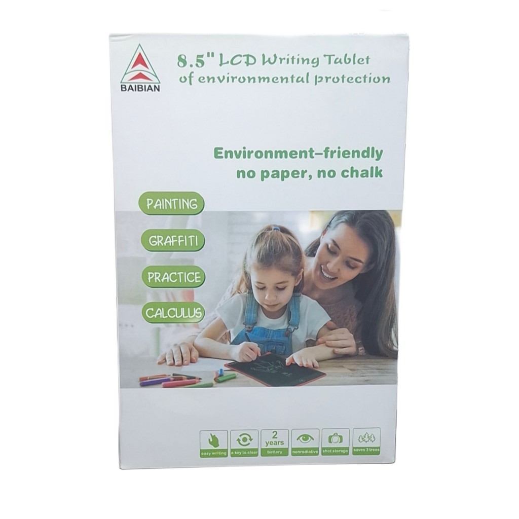 کاغذ دیجیتالی 8.5اینچ ، دارای صفحه نمایش LCD حساس به فشار قلم یا حتی لمس ناخن جهت نوشتن،کشیدن نقاشی،کشیدن نقشه،حسابداری،یادداشت برداشتن و…کاربرد دارد. با طول عمر فوق العاده جایگزین خوبی برای کاغذ،تخته سفید و..شده و محافظ طبیعت است. از مواد پلاستیکی با دوام ساخته شده و مناسب جهت استفاده در منزل ،مدارس،ماشین و…می باشد. کاغذ دیجیتالی E 8.5 دارای صفحه LCD قابل انعطاف است. لازم به ذکر است که این کالا را نباید در تغییر درجه حرارت سریع بین0-40درجه سیلیسیوس قرار داد و از قرار گرفتن در معرض نور مادون قرمز،گرد وغبار،رطوبت طولانی مدت جلوگیری به عمل آید. همینطور از هر ماده ی شیمیایی جهت پاک کردن کاغذ دیجیتالی استفاده ننمایید.یک دکمه هم در پشت تبلت قرار دارد ،اگر روشن باشد صفحه تبلت قفل شده و نوشته ی آن پاک نمی شود و اگر آن را روی حالت خاموش بگذارید ،دکمه پاک کردن زیر تبلت نیز فعال می شود. با این قابلیت می توانید یادداشت ،نقاشی و ... را که روی تبلت نوشته اید از پاک شدن حفظ نمایید.
