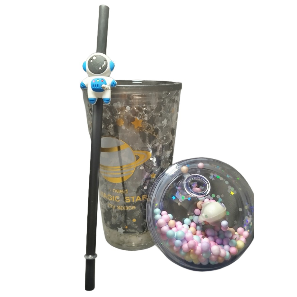 ماگ اسموتی نی دار چراغ دار طرح سیاره ای هدیه ای بسیار خاص و زیبا برای کودکان و بزرگسالان است. این محصول با رنگ بندی جذاب و زیبا یک ماگ دوجداره است که با توجه به دوجداره بودن ماگ اسموتی دارای نور بسیار زیبا می باشد که ظاهر این محصول را بسیار شیک و جذاب می کند. کاربرد های مختلف لیوان اسموتی: از این لیوان ها می توان برای سرو نوشیدنی های سرد مانند انواع آبمیوه ها، انواع اسموتی ها، انواع شربت ها و دیگر نوشیدنی ها در تابستان و انواع نوشیدنی های گرم مانند انواع دمنوش ها، انواع چای ها، نسکافه و غیره را در فصل های سرد استفاده کرد ضمنا یک اکشن فیگور کوچک متناسب با مدل طرح لیوان که به نی نصب شده و قابلیت جدا کردن نیز دارد.